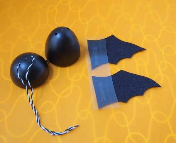 Cortar las formas de la ala de fieltro y colocar el huevo en la espalda en los lados con los puntos de pegamento de la línea.