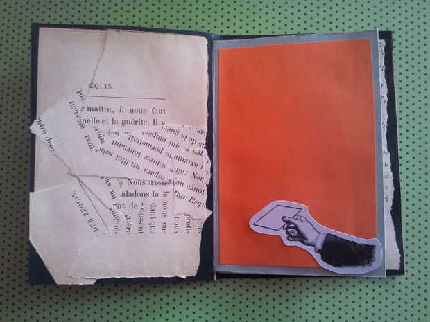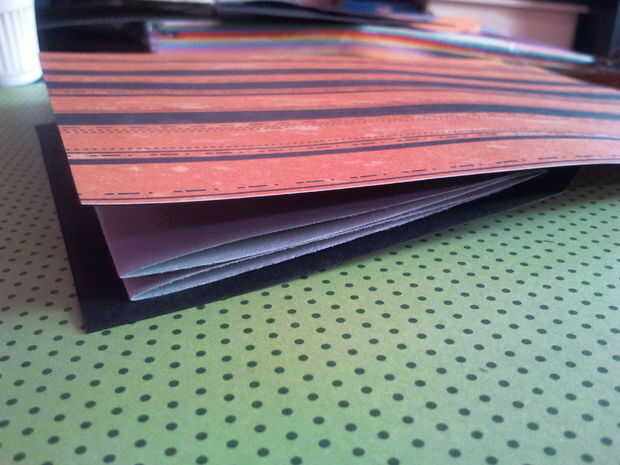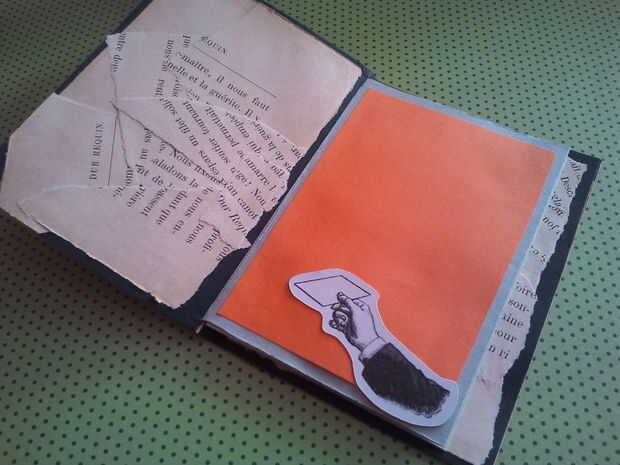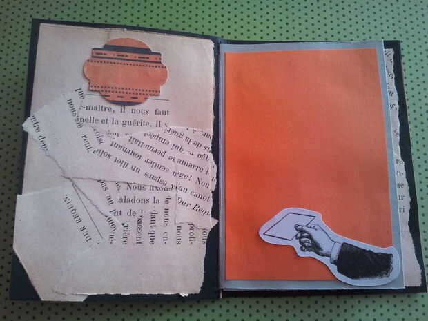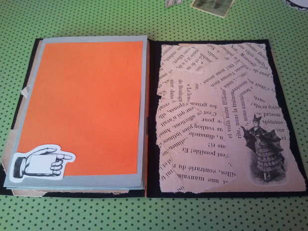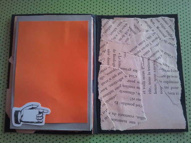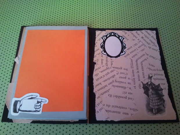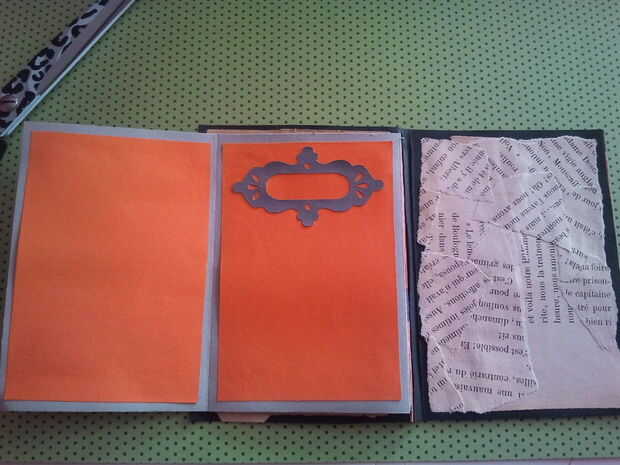Aquí está, se hace! Sólo tienes que montar tus páginas y papeles pequeños. Por supuesto, poner el interior de las páginas (los naranjas) y añadir: