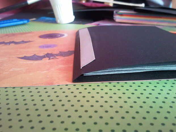 c. licencia que esto también piezas en uno al otro. Si es necesario, coloque un trozo de cinta a lo largo de la pieza doblada gris pequeño de manera que se pega en el papel negro. Esto no será visible al final del cuaderno.