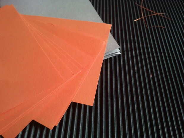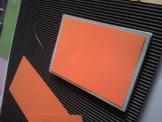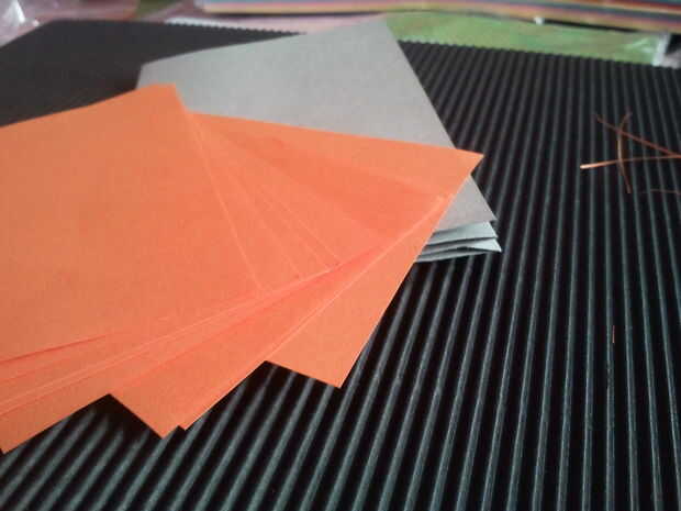 4. tomar algún otro papel naranja normal y cortar 8 páginas, un poco más pequeño que el tamaño de sus 4 páginas grises.