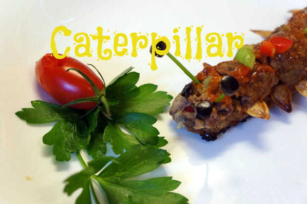 para una cena de Halloween entre amigos, decidí crear un plato de murciélagos gooey, tripa llena, asado con sus alas y acompañado de salsa de sangre además. Previamente había hecho un plato de murciélagos tripa llena con tomates grandes, pero he deci