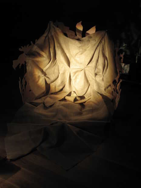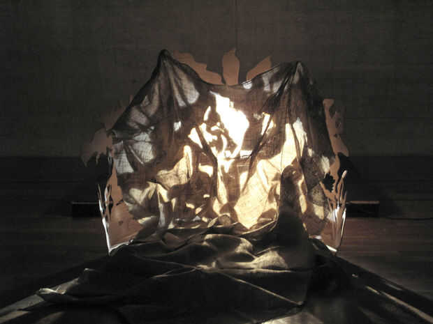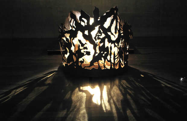 La pieza produce bellas imágenes para estudiar los mismos proyectos de tiempo y las llamas en el piso.
