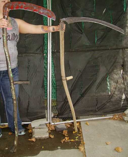 Este es el apoyo y la guadaña real aparece al lado. ¿Puede decir uno real? (Sugerencia: el apoyo es cubierto de sangre!)