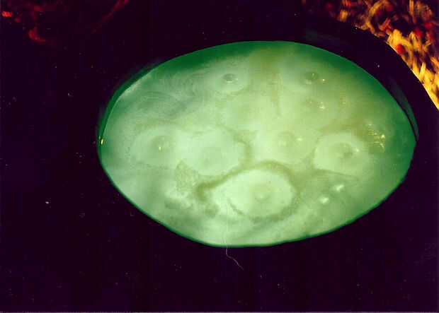 Foto 4: El efecto terminado con aire corriente y posterior iluminado desde abajo. La luz trasera puede ser de cualquier color en caso de que prefiera tu goo un color diferente al verde. Cambio luces de color también sería una opción si se desea.