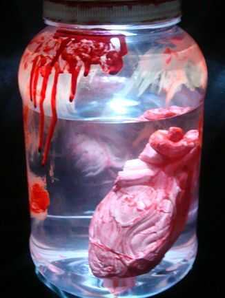 Halloween tarro de humano corazón apoyo científico loco