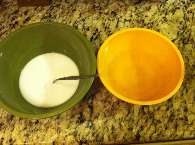• Vierta la botella de 4 onzas de Elmer™ blanco pegamento en el segundo recipiente