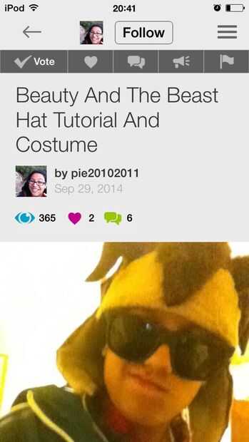 A continuación, "pie20102011" hizo esta belleza fresca y el sombrero de la bestia que se ve muy cerca de la imagen de inspiración. Si quieres ver el tutorial completo seguirla