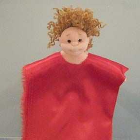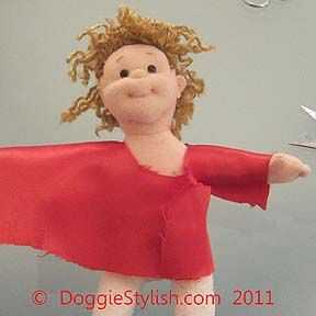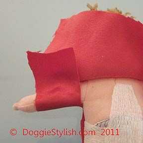 Voltear el muñeco. Caliente pegar la tira de tela al brazo de la muñeca y cortar el exceso.