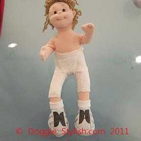 Envuelva el veterinario Envuelva alrededor de la cintura de la muñeca hasta que no está mostrando ninguna tela. La muñeca ahora parece viste pantalones de montar a caballo!