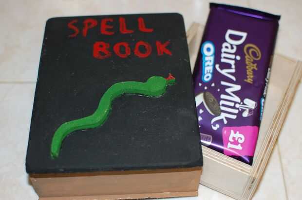 Para este proyecto vamos a hacer un libro de hechizos de madera con una diapositiva de sorteo que puede ocultar sus golosinas y dulces.