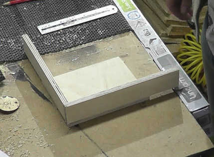 Tomar la madera contrachapada de 3/8 de pulgada y cortar cuatro tiras que son 1/2 pulgada ancho y más de 6 pulgadas. A cada lado tope a cada pedazo de madera uno contra el otro para crear el empalme de la esquina. Corte los lados más largos de 6 pulgadas y luego los lados más pequeños que necesita cortar para caber entre los dos lados más largos cuando éstos se pegan abajo.
