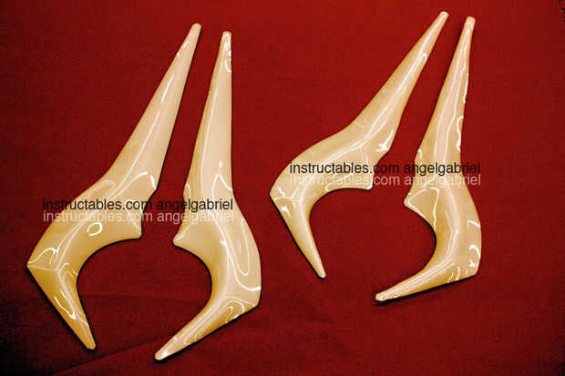 Hice varias maquetas de papel. Cuando estaba satisfecho con el modelo de papel final, corté cuatro idénticas "hojas" de 1/8 láminas de plástico acrílico con una sierra de cinta. Muescas en bordes de las piezas cortadas, para imitar las curvas de la hoja. Las muescas ayudó a definir el contorno de la hoja cuando thermaforming con la heatgun. Después de todo se hicieron cuatro pedazos de lámina, en forma de difusores de luz para caber dentro de cada hoja.