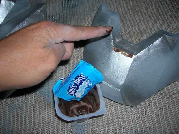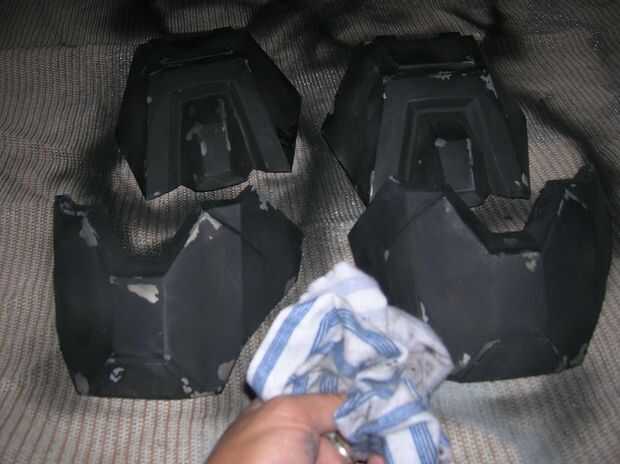 Si su armadura es marcado con una cicatriz de batalla, limpiar todo con un trapo húmedo para quitar la pintura sobre el "enmascaramiento". Enjuague el trapo con frecuencia o su armadura olor a comida. Si las áreas de plata son demasiado brillantes, el polvo la zona con pintura negra otra vez.