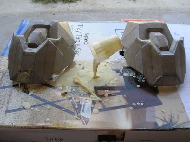 Una vez que la resina cura, ponga la pieza a un lado. Asegúrese de que las piezas se apoya de una manera tal que no pierde su forma. La resina puede curarse pero puede ser también todavía caliente y maliable. Mezclar más resina para la pieza siguiente. Continúe de esta manera hasta que los pedazos del hombro se endurecen con resina.