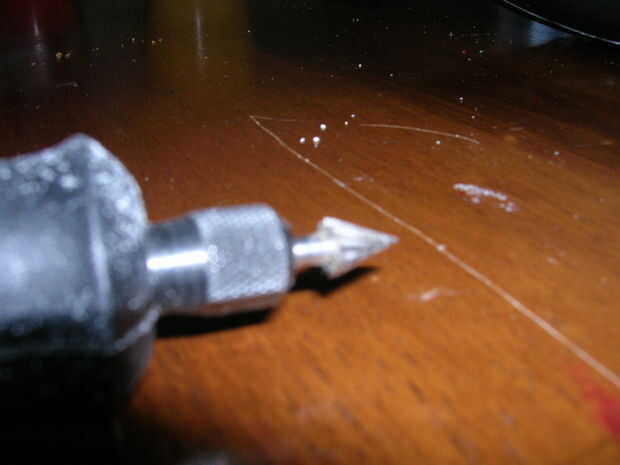 No tenía salsa de tomate o mostaza pero apenas termino una taza de chocolate con leche. Secó los restos sobre las imperfecciones que dejé en el bondo. Ver laSección de pintura de la parte 3 - brazos para los cuadros de mi técnica de pudín.
