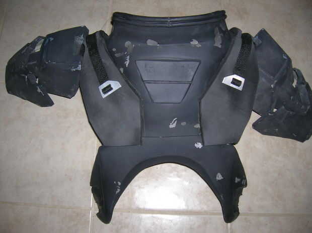 Para mayor detalle, tal vez polvo o barro debe ser frotado contra la armadura. Quemaduras de "láser" y armas de plasma sería un toque fresco. manchas pintura negra aquí y allí podrían hacer ver más accesorios de batalla también.