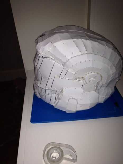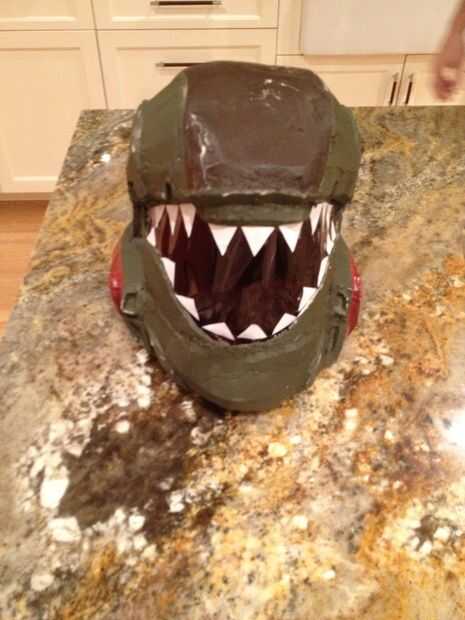 este es mi casco de cartón halo... sé prefieren pepakura, pero para algunas personas que no es un lujo otros tiene... así que decidí hacer uno de cartón... srry por la falta de instrucciones, no pensé hacerlo y instructable hasta que fue a finales...