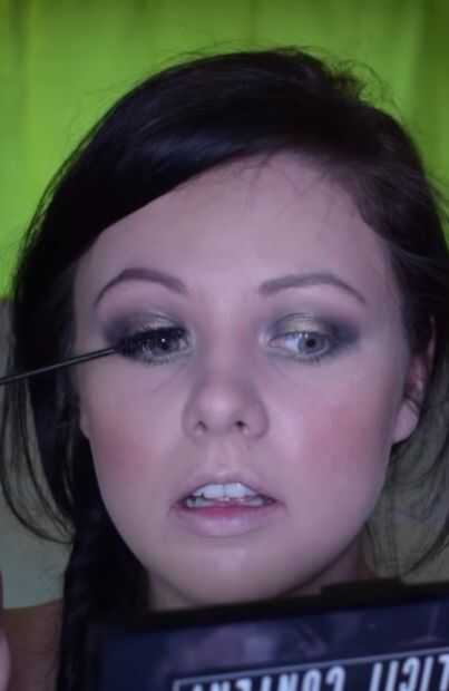 Tutorial de maquillaje de bruja HalloweenPaso 1: la piel. 1. Utilice la pintura de cara verde y aplicarlo a mi cara y el cuello.2. usar pintura negra y hago sombras a mi nariz y mejillas.Paso 2: las arrugas.Usted debe ver el video que usted puede rea