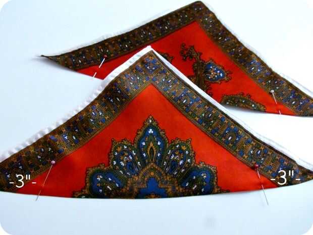 Medida en aproximadamente 3" en cada esquina.  Puntada de hilván largo entre sus marcas a reunir.  Recoger un poco.