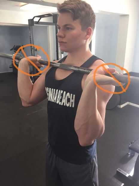 No permita que las muñecas doblar hacia atrás demasiado lejos cuando presionar el peso, ya que esto puede causar dolor agudo o crónico de la muñeca.