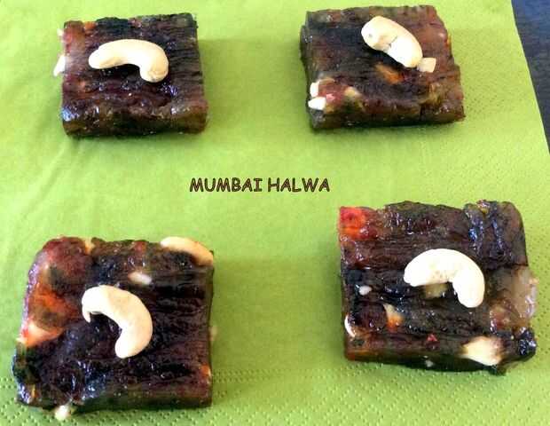 Halwa de Bombay es un plato dulce muy famoso en la India especialmente Bombay (ahora Mumbai). Como un niño, este fue mi favorito. Puedo decir, sus chocolates un poco como gomosos, es decir, masticable. Su hecho de harina de maíz, azúcar y clarifica la mantequilla. Su tan fácil de hacer y super sabroso. Para este concurso de arco iris, he tratado de incluir algunos colores de la comida con la esperanza de que saldria realmente rainbowy colorido pero no realmente sube exactamente como me imaginaba pero todavía le queda bien a su propio.