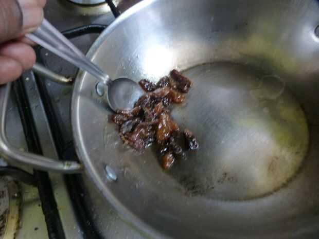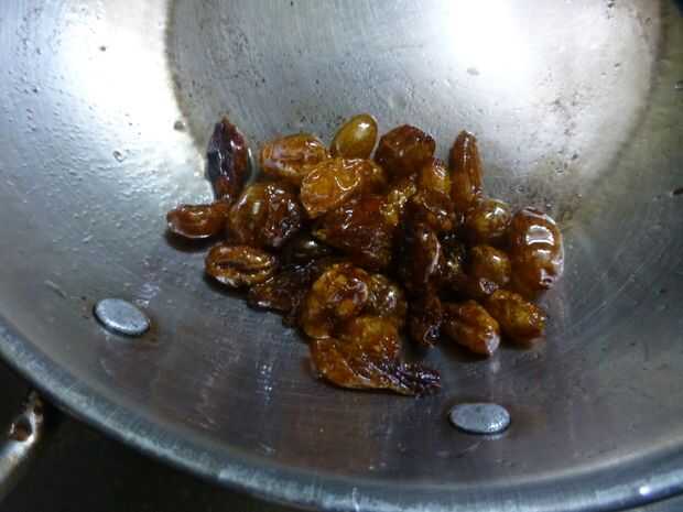 • Añadir las pasas a la manteca caliente y asar hasta que agrande de tamaño.
