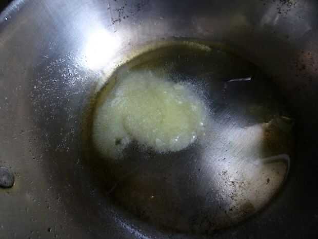 • Cuando sienta que se está pegando la pulpa a la sartén, añadir otro 10 gramos de manteca y mezclar bien