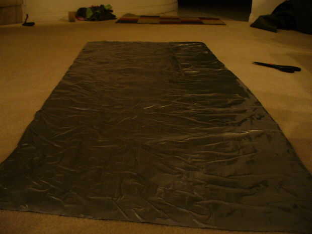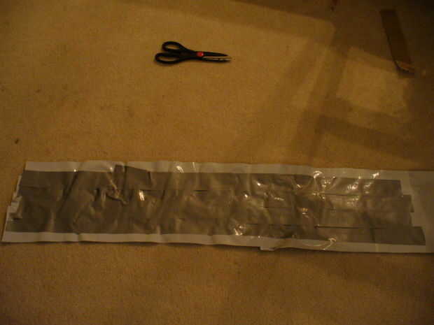 Por lo obvio no quieres poner en el lado pegajoso del conducto por lo que necesitará capa los lados pegajosos juntos la cinta. Sólo hacer pequeños pies 2 líneas de cinta adhesiva y coloque las grietas de la otra cinta de conducto para hacer una alfombra sólida.