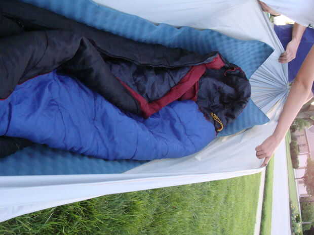 Me gusta hamaca camping porque es cómodo y de la tierra. También no es necesario a la tierra de la cicatriz por un camping de nivelación.Se trata de una hamaca carpa camping que hice hace unos 20 años. Está hecha de nylon y se almacena lejos de la lu
