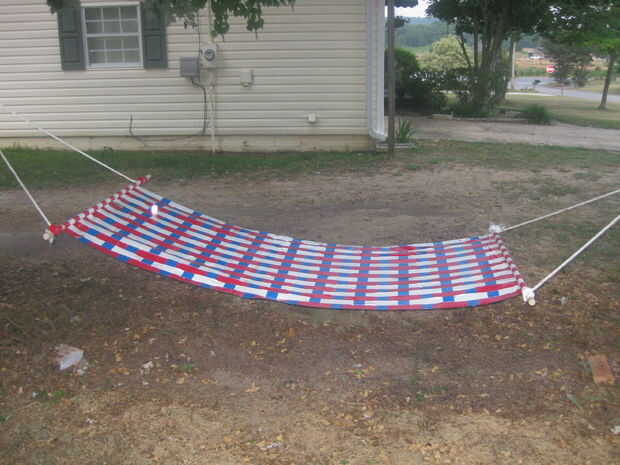 Wan't para hacer una hamaca con un presupuesto ajustado? Este instructable es para ti!Este instructable le mostrará cómo hacer una hamaca de 2, 50 m rollos de cinta adhesiva y alguna cuerda y madera.Espero que lo disfruten!Paso 1: Tela de la cinta de
