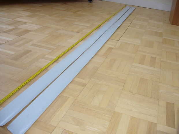 Después de que ponga 2, m 2 tiras de cinta de pato a lo largo de las tiras de la superficie de la cinta como se muestra en la cuadro 6 y 7.