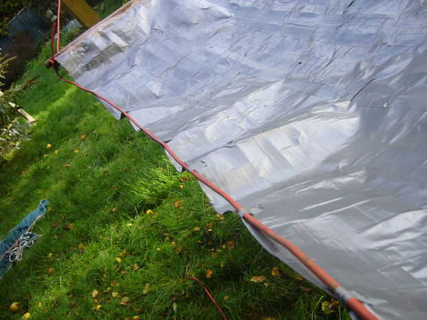 Todo lo que necesitas para hacerlo Coloque un lenth de 2m de cuerda de cada extremo, utilice el orificio donde se une la cuerda un nudo. Hacer esto para cada lado y cinta de la cuerda por el borde.