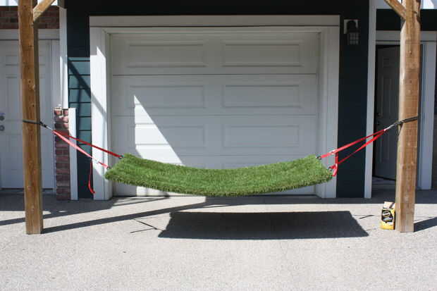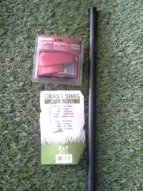 Se puede utilizar madera en lugar de la pipa, cuerda para el amarre o algún otro tipo de material de fijación además de los lazos del cierre relámpago. Yo recomendaría tratando de encontrar lazos zip verde y posiblemente negro amarres para que se vea mejor. Puede ser difícil encontrar la hierba, usted puede conseguir la materia de grado césped pero su muy caro, usted puede conseguir lo más barato que parece viene de un putting green, así pero sería evitarlo. Lo que encontré fue un interior alfombras al aire libre por lo que tiene fuerza decente a él.