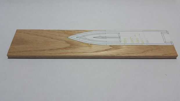 Imprime y recorta el patrón. Utilizando adhesivo en aerosol o un palillo del pegamento, colocar el patrón a su pedazo de roble. (editar la longitud de la aguja para hilos más. Hice mi aguja 8 pulgadas más largos que el modelo para una longitud total de 16 pulgadas)
