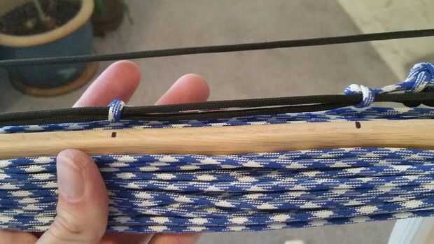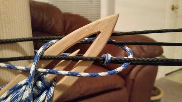 Para el segundo paso, lazo alrededor del hamaca telar de pie y realizar el nudo mismo de la siguiente cadena de fondo en la frontera.
