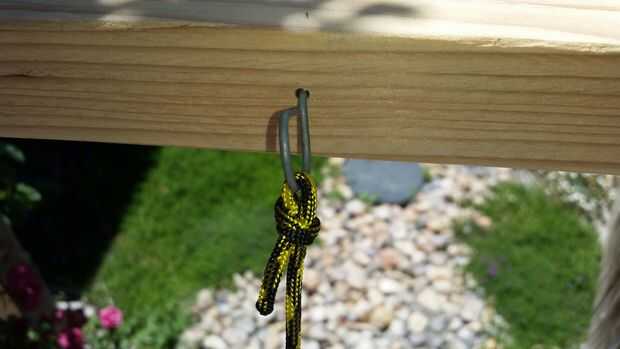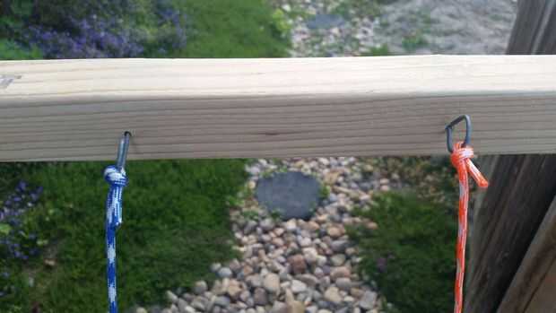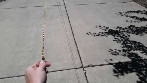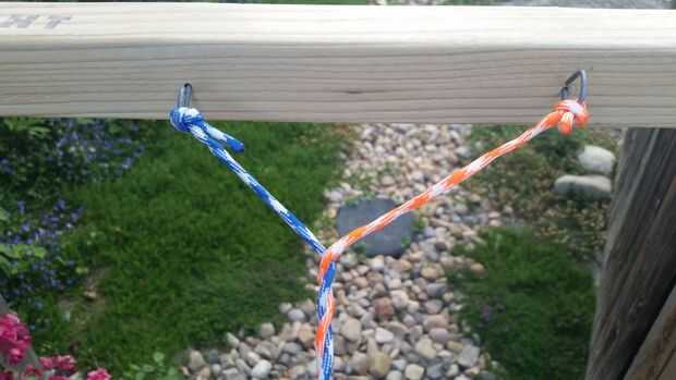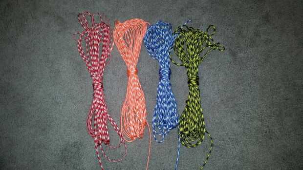 ¡ Tienes que hacer un montón de cuerda! Yo utiliza 480 total pies de paracord para hacer ambos ovillos para esta hamaca. Originalmente intentó hacer una cuerda con hebras de 40 pies. Esto fue una mala idea y realmente difícil de manejar. Después de eso me di cuenta de que sería más fácil hacer cuerda con mechones más cortos.