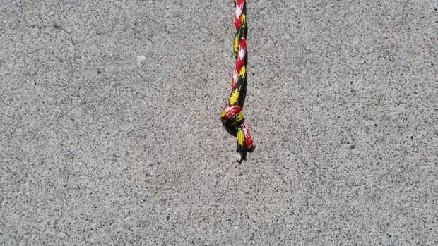 - Atar un nudo de mano al final de las dos cuerdas (Figura 4)