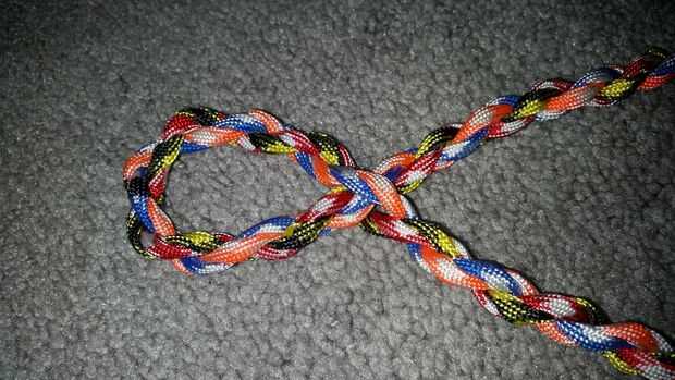 Marcar el centro de la cuerda con un rotulador y el lazo en su puño de escota 4 pulgadas de largo. Siguiendo el esquema de la cuarta foto, abrir las vueltas de la cuerda para permitir que la cuerda correspondiente ser alimentados a través del "ojo" de la cuerda.