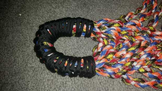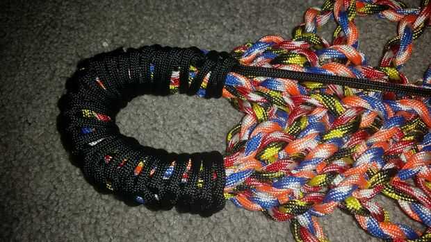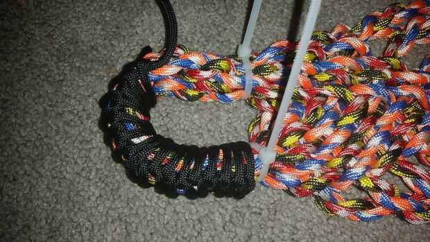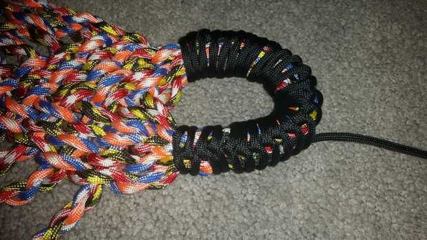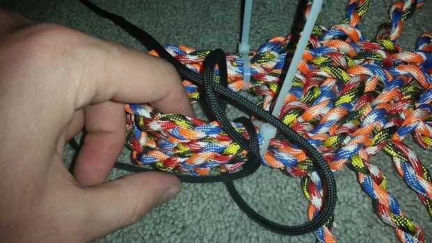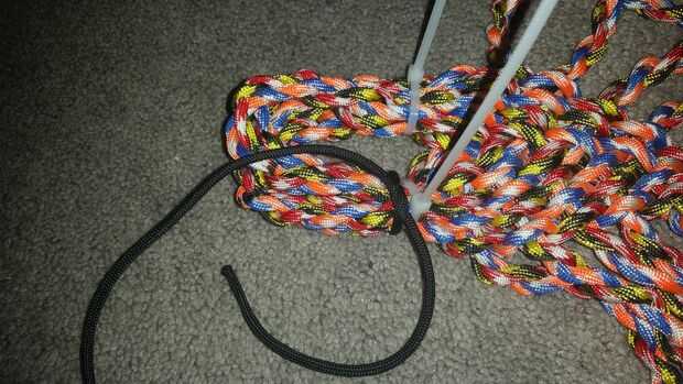 5. Coloque el paracord en la amarra (yo usé un alambre caliente para derretir a través y conectar el paracord a la amarra)