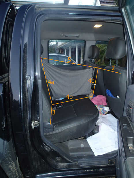 2. la distancia desde dentro de la puerta donde usted desee la hamaca para parar, medir justo detrás de lo reposacabezas de los asientos delanteros.