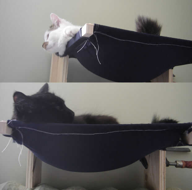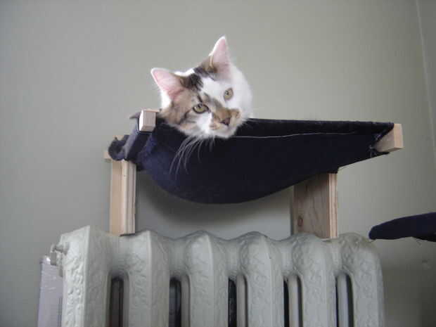 todo el mundo ama hamacas. Especialmente los gatos. Éste pasa a ser uno que se suspende sobre un radiador de calor, pero se puede montar en una pared o de pié.