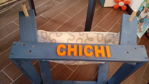 Para personalizar la hamaca de su gatito puede imprimir su nombre en 3d. Si no tienes una impresora 3D en casa, usted puede enviar el artículo:3dHubs Ceciui