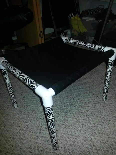 De este pequeño pvc tubo gato hamaca marco acabado son: 10" altura, 10 ½" ancho, 16 ½" largo.Cuando a partir de voluntariado en mi refugio de animales local, yo vi que alguien había hecho hamacas de pvc pipa marco gato. Los marcos de la ham