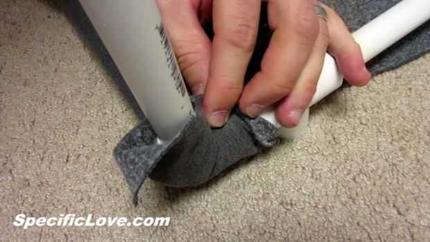Para agregar algún placer, quería que un cilindro de giro al PVC. Originalmente pensé en pegar cierta cuerda a un tubo de PVC de 1 pulgada que se trabajan, pero en la tienda local de dólar, encontró estos rodillos grandes. Están cubiertos de una tela resistente y todavía suave. El centro es un plástico duro que se gire libremente sobre el PVC. Y puesto que son sólo un dólar cada uno, tengo uno extra para reemplazo futuro.