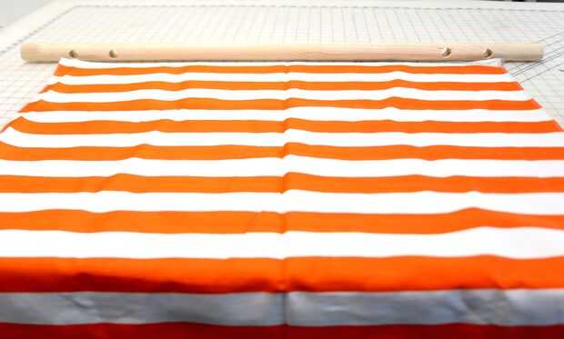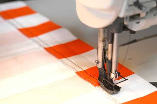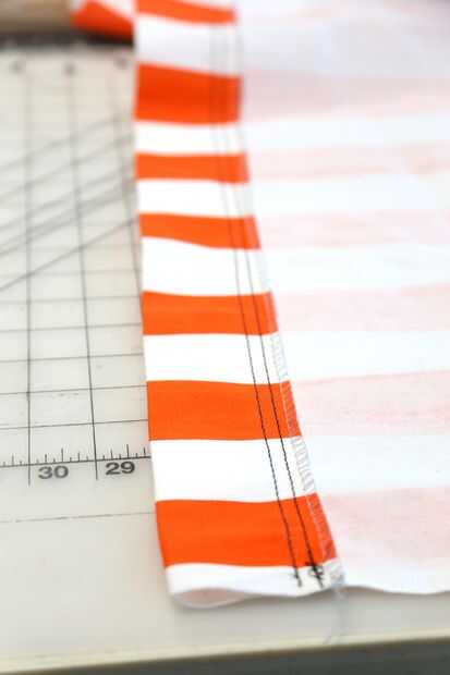 Usé a una tela de lienzo pesado, que corté hasta 36 pulgadas por 72 pulgadas (o 1 x 2 yardas). Luego todos serged los bordes, cosido, dejando un margen donde la cuerda ser roscada y doblado por los dos lados más largos a través interior. Cosí los bordes dos veces para reforzar la costura, que tendría que sostener contra el peso de la persona sentada en la silla de la hamaca.