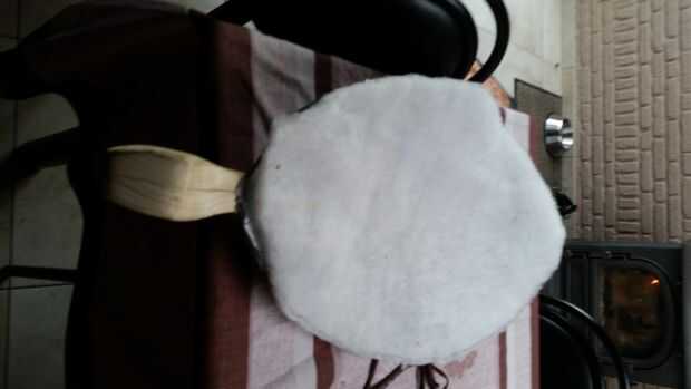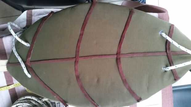de lana en el asiento, disfrutar de un fondo suave y finalmente acabado con una tela verde que yo he cosido uno al otro y para colmo tengo que trabajar un cordones utilizados como venas