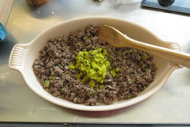 Hamburguesa con queso macarrones cazuela (3 / 4 paso)