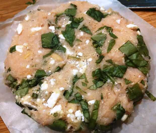 Ahora deja de las hamburguesas. Tomar el pollo molido y coloque en un tazón grande. Añadir la espinaca picada, queso feta y piñones... Sazonar con sal y pimienta (las cantidades que agregar a las hamburguesas son completamente hasta... ser el juez). Ahora incorporar todos los ingredientes teniendo cuidado de no trabaje más de las aves de corral y formar una bola grande. Separar en pequeñas bolas y presione en las hamburguesas de igual tamaño separadas por trozos de papel de cera. Juez tamaño de las hamburguesas de pollo en el tamaño del rollo usted está utilizando, teniendo en cuenta que reducirá un poco. Coloque en el congelador por al menos 15-20 minutos antes de asarla.