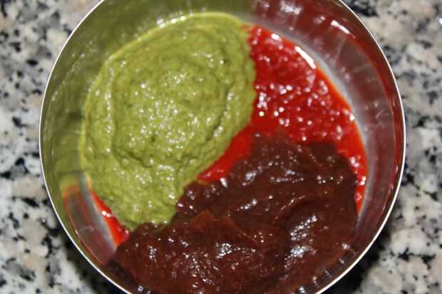Siga los mismos pasos para el chutney de ajo (esto es el picante) y dulce salsa picante