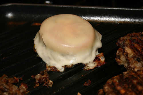 Luego tomar un trozo grande de queso mozzarella, objetivo y centro y colocar en la torre. El objetivo es que el queso derrita y cubra la torre sin ripeo. Por esta razón las rodajas de tomate deben estar a temperatura ambiente para que el queso no tendrá un momento difícil para fundir uniformemente. Después de que el queso ha logrado el cobertor ideal, retire de la parrilla y coloque en el centro del bollo de la hamburguesa de fondo. Colocar el bollo de verde en la parte superior, y ahí lo tienen, una "seta 1UP" Mushroom Burger!